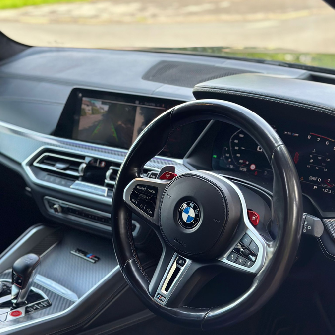 The high-performance 4.4 litre M Twin Power Turbo 8-cylinder petrol engine delivers 625hp, making it the most powerful engine amongst BMW standard production vehicles. 0 to 62mph takes just 3.8 seconds, less time than it took you to read this paragraph. The X5 M Competition offers superior handling and oozes charisma with its powerful proportions, self-assured contours and luxurious M design elements. Discover the epitome of luxury and sportiness with M Multifunction seats in full Merino leather upholstery, M specific instrument cluster and control display.