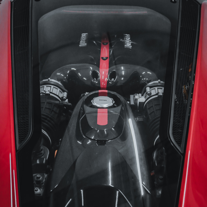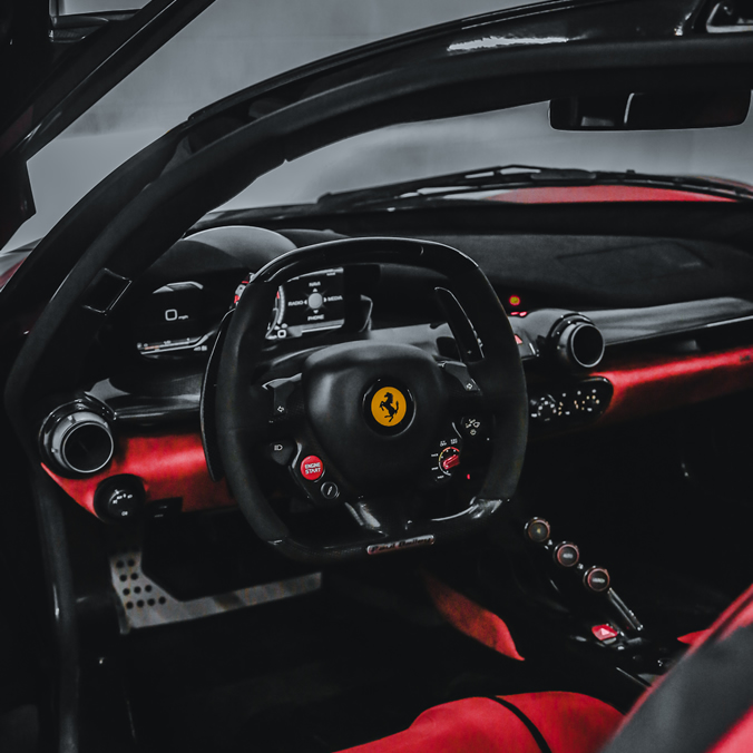 Our La-Ferrari features beautiful Rosso Fuoco paint work with a contrasting gloss carbon/ black aero pack. The sculpted body work flows effortlessly from the front to the rear where the super-advanced 6.3L V12 engine is housed. Offering over 800bhp launching you from 0-60 mph in an eye-watering 2.4 seconds. Rapidly accelerating to a top speed of over 217mph.